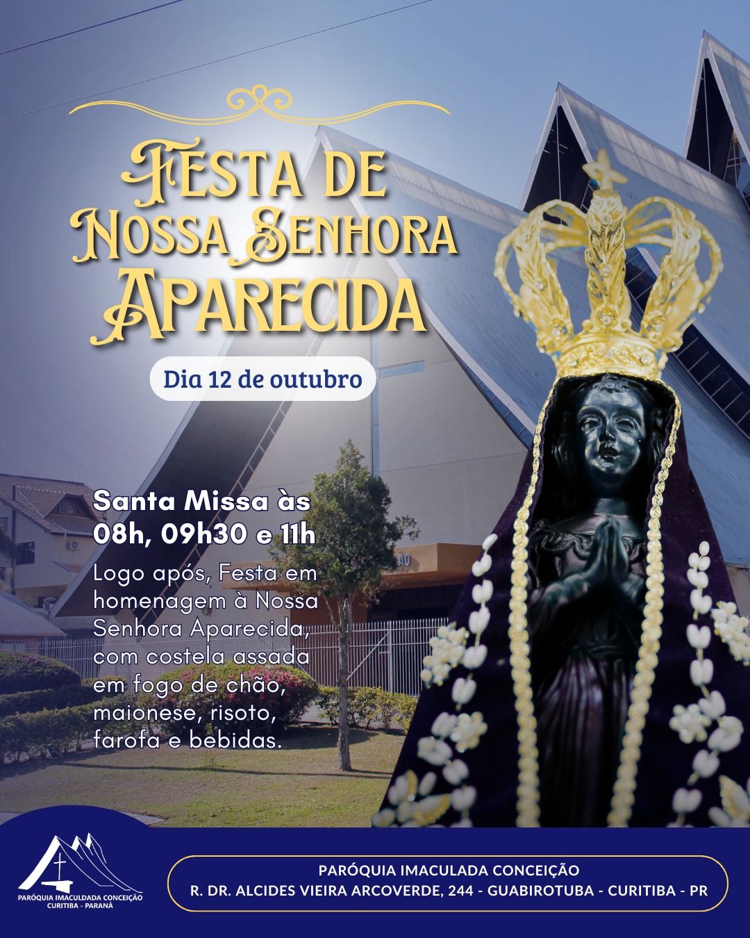Traga sua família e amigos e venha celebrar conosco a Festa de Nossa Senhora Aparecida.