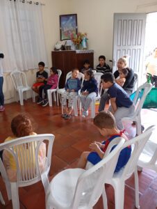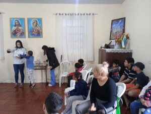 A ação contou com a contação da história “O Monstro das Cores”, conduzida por Rozi, voluntária da pastoral, abordando de forma lúdica e educativa as emoções e sentimentos, de maneira acessível ao universo infantil. Após a contação, foram realizados os acompanhamentos de peso e altura das crianças, além da entrega de um lanche preparado com carinho.